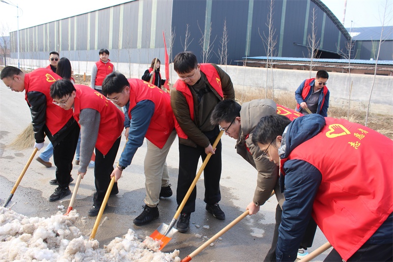 下午,10余名志愿者身著統(tǒng)一服裝,手持鐵鍬、掃帚等工具,對工業(yè)區(qū)園區(qū)內的垃圾和積雪進行集中清掃,以實際行動保障道路整潔、暢通,為過往司乘人員及周邊群眾安全出行保駕護航。